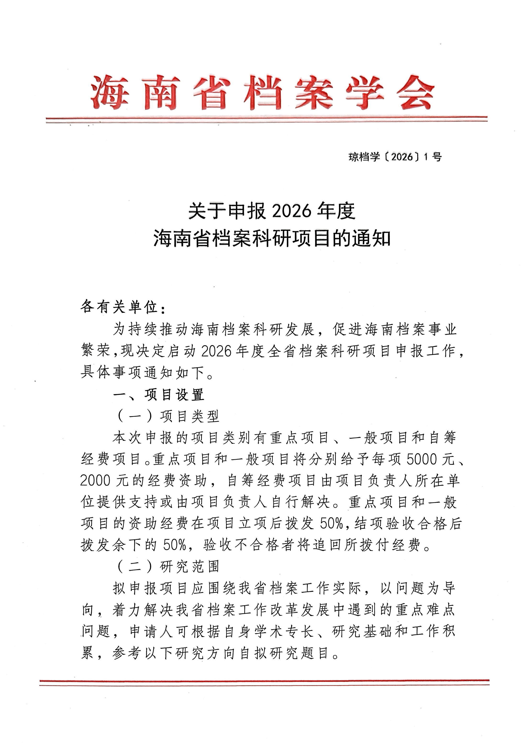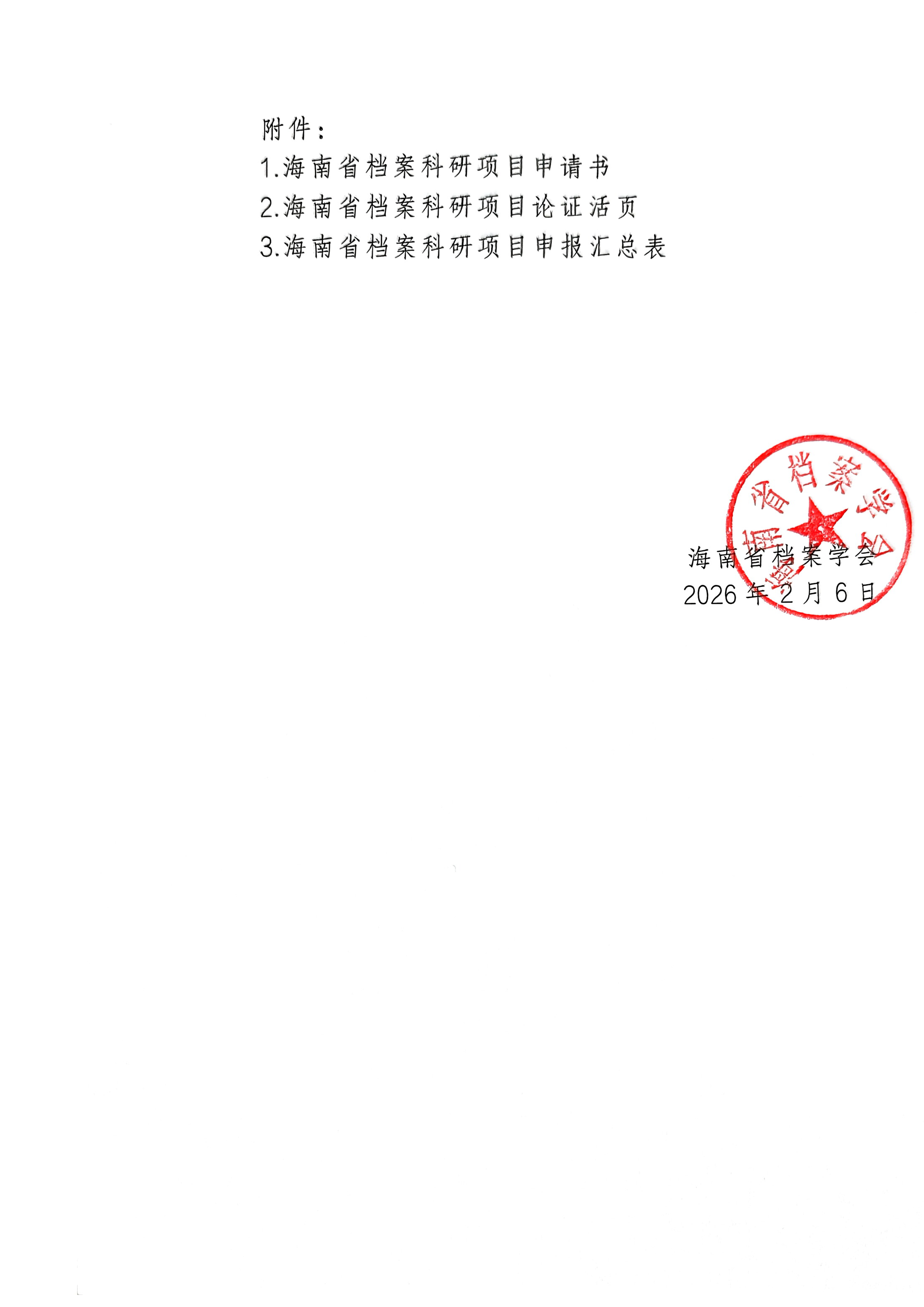 附件2:海南省档案科研项目论证活页.doc 附件3:2026年度海南省档案科研项目申报汇总表.xls